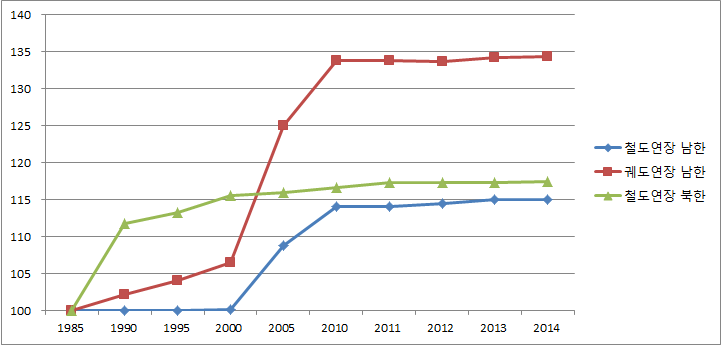 <그림 1> 남북한 철도연장 추이